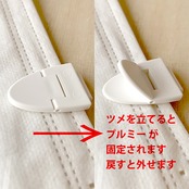 プルミーのつまみを掴んでマスクを上げ下げできます。