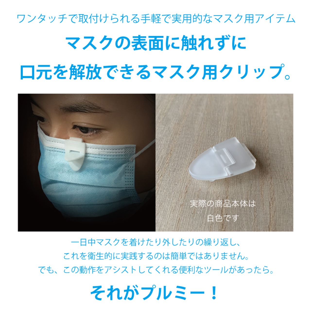 マスクの表面に触れずに口元を解放できるマスク用クリップ。