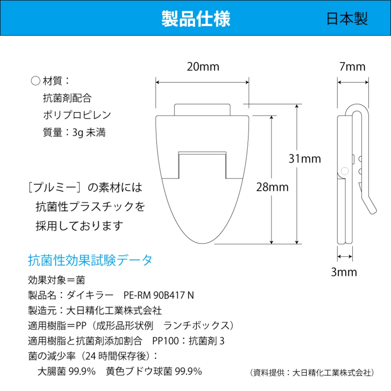 材質: 抗菌剤配合ポリプロピレン